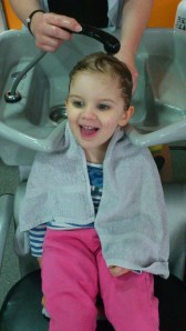 The hairdresser, Emmy, was lovely with her, popped her on a booster with extra piled up towels so she could have her hair washed ‘backwards’ like the grown-up ladies. Not a single gripe from Her Ladyship.